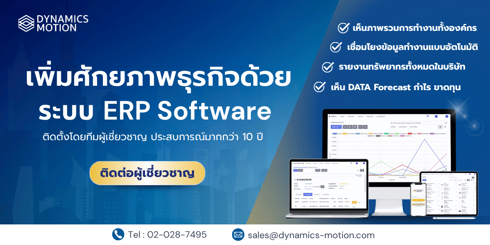 สำหรับ SME พร้อมตัวอย่างเข้าใจง่ายปัจจุบันโปรแกรม ERP บัญชี หรือระบบ ERP ที่เข้ามาช่วยลดความซับซ้อน ทำให้การคำนวณภาษีเงินได้นิติบุคคลเป็นเรื่องง่ายและมีความแม่นยำมากขึ้น ช่วยลดความผิดพลาดที่เกิดจากการคำนวณของเรา สำหรับผู้ประกอบการที่สนใจสนใจระบบ ERP โปรแกรม ERP โรงงาน หรือต้องการวางระบบหลังบ้านให้ทำงานร่วมกันได้อย่างมีประสิทธิภาพ ทีม Dynamics Motion เราพร้อมออกแบบระบบ Motion ERP ระบบ ERP Software ที่ถูกออกแบบมาเพื่อยกระดับการจัดการธุรกิจของคุณอย่างลงตัว อีกทั้งยังรองรับบัญชีภาษีไทย และการออกรายงานงบการเงินอีกด้วย หากสนใจสามารถติดต่อได้ผ่านอีเมล sales@dynamics-motion.com หรือติดต่อสอบถามเพิ่มเติมโทร 02-028-7495